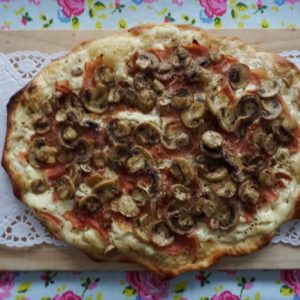 Pizza blanca con champiñonesPizza blanca con champiñones